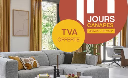 Venez découvrir dès le 14 février 2025 dans votre magasin Gautier notre offre TVA canapés à Bordeaux Sainte-Eulalie, et cela jusqu'au 2 mars.